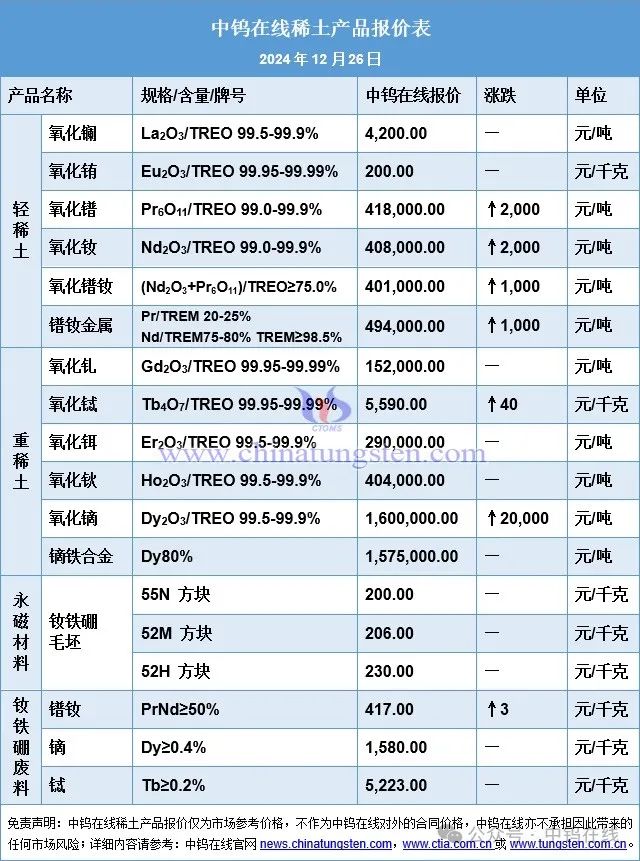 2024年12月26日稀土价钱一览九游会j9体育(中国)官方网站