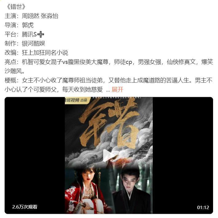从网上传出的音信上看,周翊然和张淼怡将二搭,而二搭的剧是《错世》,这部剧论说的是崔小彼下山磨真金不怕火时就怕参加两百年前的扭转时空,铸成大错之下,碰到少年魏劫。在之前的寰宇中,魏劫是世东说念主眼中的“大魔头”,是以她思调动魏劫的荣幸,匡助他走上正说念,在束缚相处的流程中,她迟缓地走进魏劫心里。