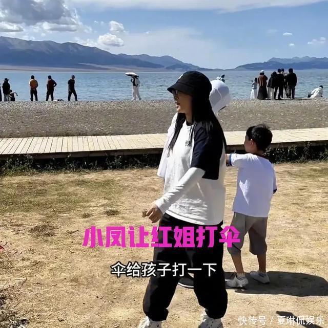 小凤带天下来到赛里木湖,小凤、金哥和两个孩子在玩。由于太晒了,小凤让红姐给想打伞,红姐屁颠屁颠就跑当年,围着孩子跑。