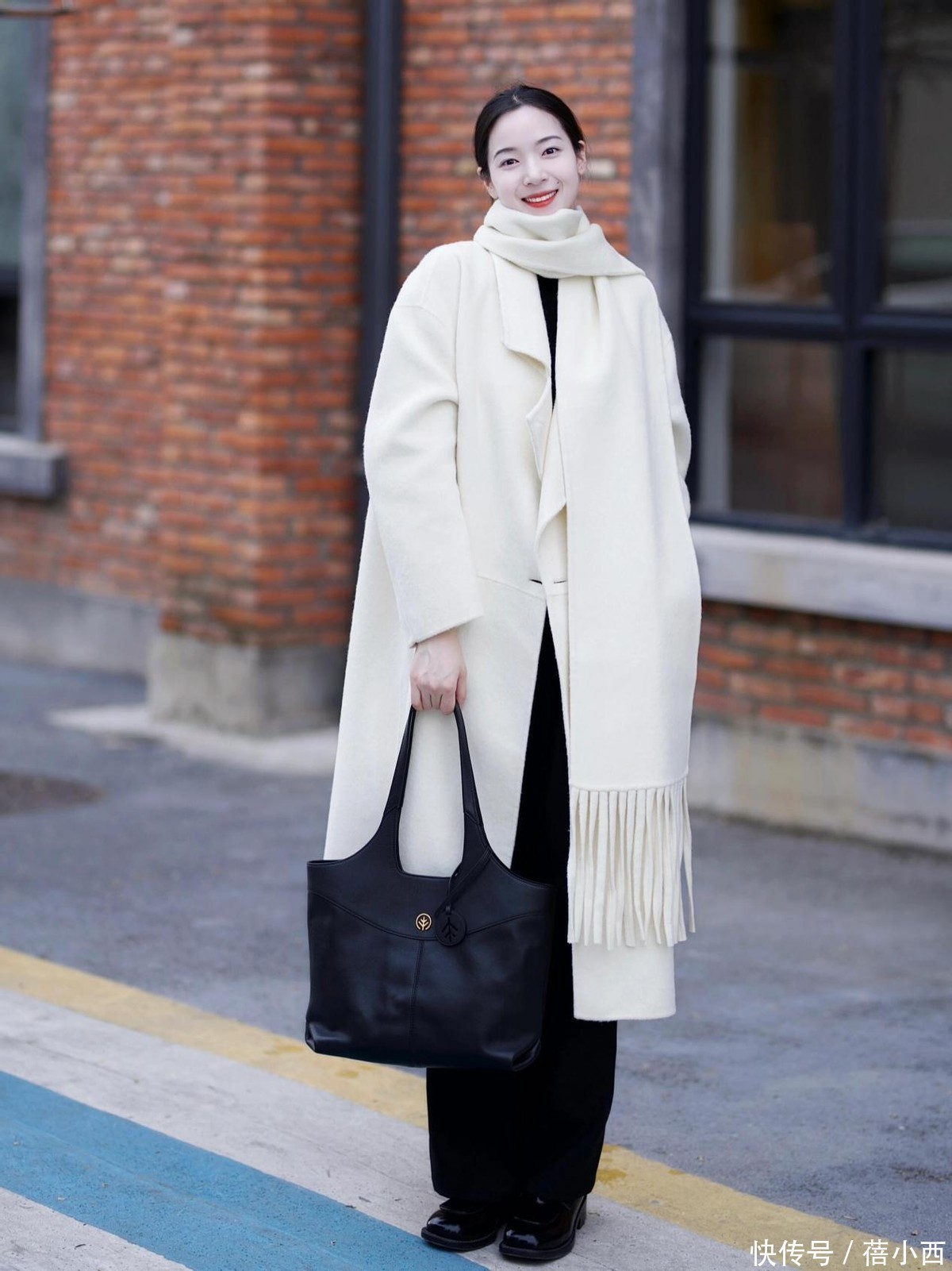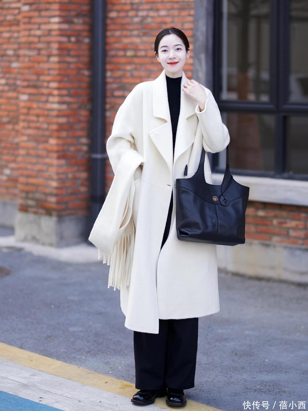 冬天穿大衣,最不会出错还显耀气的组合,必须是“黑白配”!检朴的白色大衣搭玄色阔腿裤,显瘦、高等、还百搭,不需要其他花里胡梢的配色堆积在身上,简轻便单就很耐看,无论是通勤如故逛街,都能穿出“不起劲的文静感。