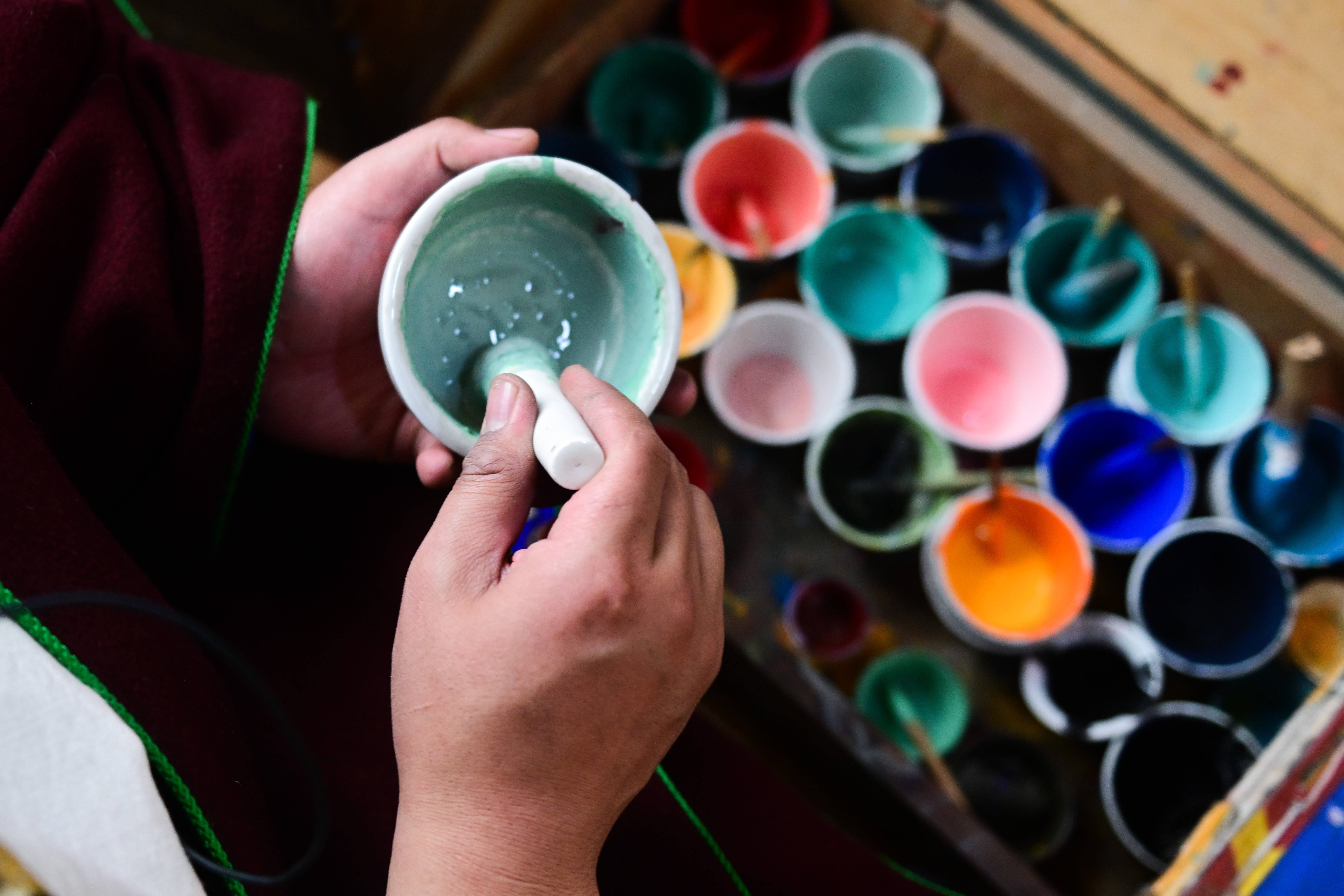 随着当地旅游发展,这门陈旧艺术,正悄然走进更多东说念主的生存。同仁市是青海省惟一的国度级历史文假名城,吾屯上庄村和吾屯下庄村因“村村有画院、家家有画师”而遐迩驰名。怪异推开一扇门,齐可能碰见正在调颜色的画师。