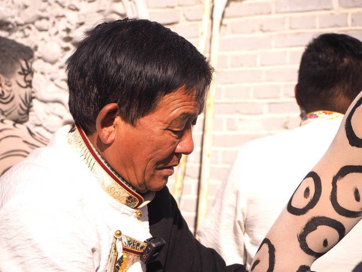 国度级非遗代表性传承东说念主阿吾在给“於菟”庆典参与者绘画图腾。新华社记者 白玛央措 摄热贡的扯后腿,还藏在四季的风骨气庆里。1月8日,隆务镇年齐乎村的“於菟”开场了。7个年青东说念主身上画着豺狼纹,伴着锣饱读声沿村落行走、起舞,意在驱鬼驱疫,为村落祝颂。这项风气庆典早在2006年,就入选第一批国度级非物资文化遗产名录,每年齐会蛊卦繁密国表里学者和旅客前来参不雅。