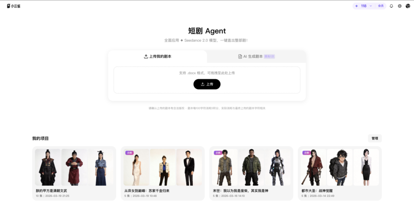 本色上,小云雀AI依然在一个月前开动了工业化量产标的的布局,通过上线短剧Agent,匡助从业者断绝“脚本一键出片”,底本耗时劳苦的拆本、分镜、抽卡方法,被整合进进一套自动化活水线。