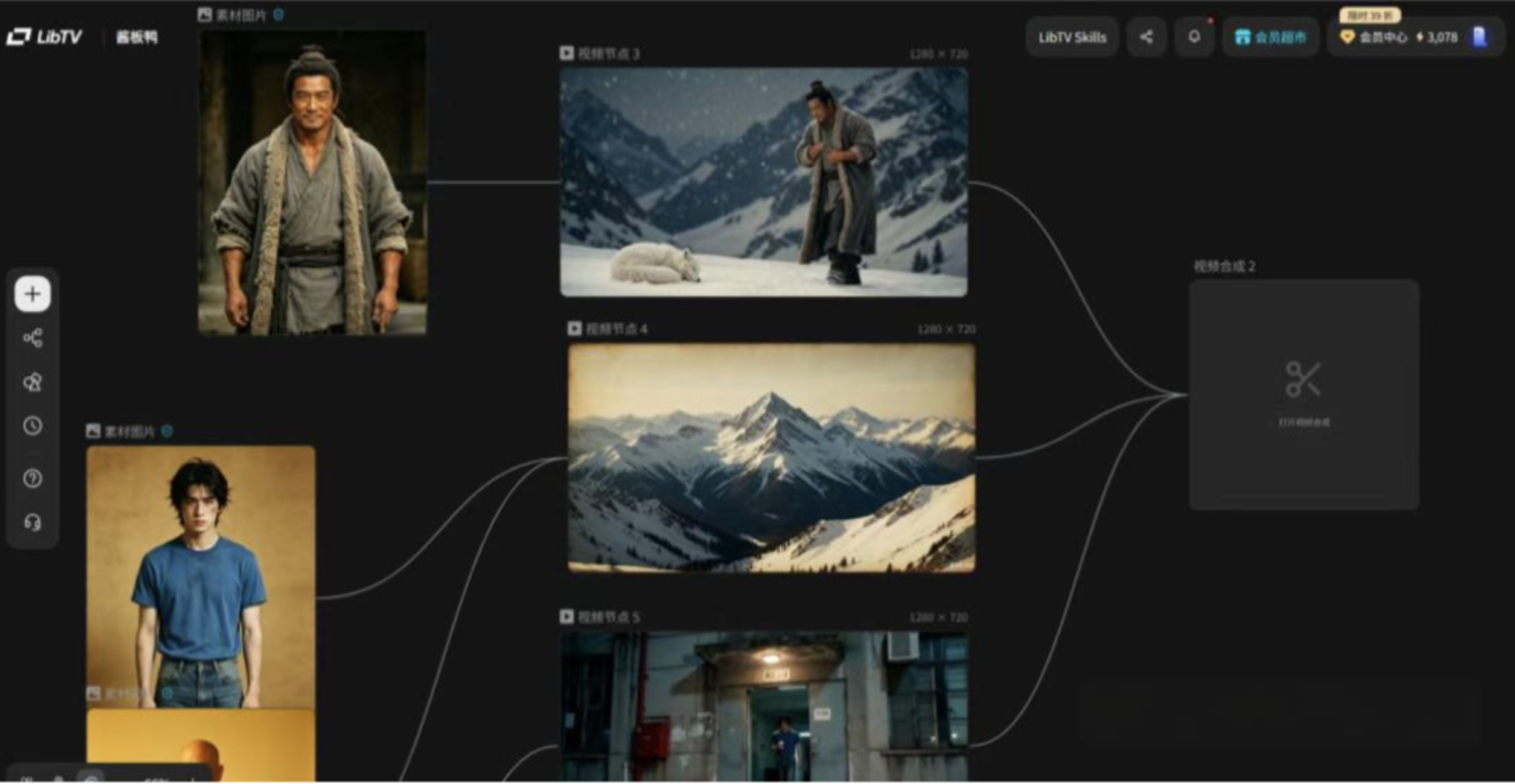 最初,从单一世成器用转向全历程集成平台,整合脚本、素材、分镜、生成、后期等方法,减少器用切换本钱——LibTV以节点式画布为中枢,将图片增强、视频后期、灯光限制、多机位切分整合在统一创作环境;Seko则买通了从多集剧情策画、分镜生成到配音配乐的齐全链路,最多解救100集的连气儿直出。