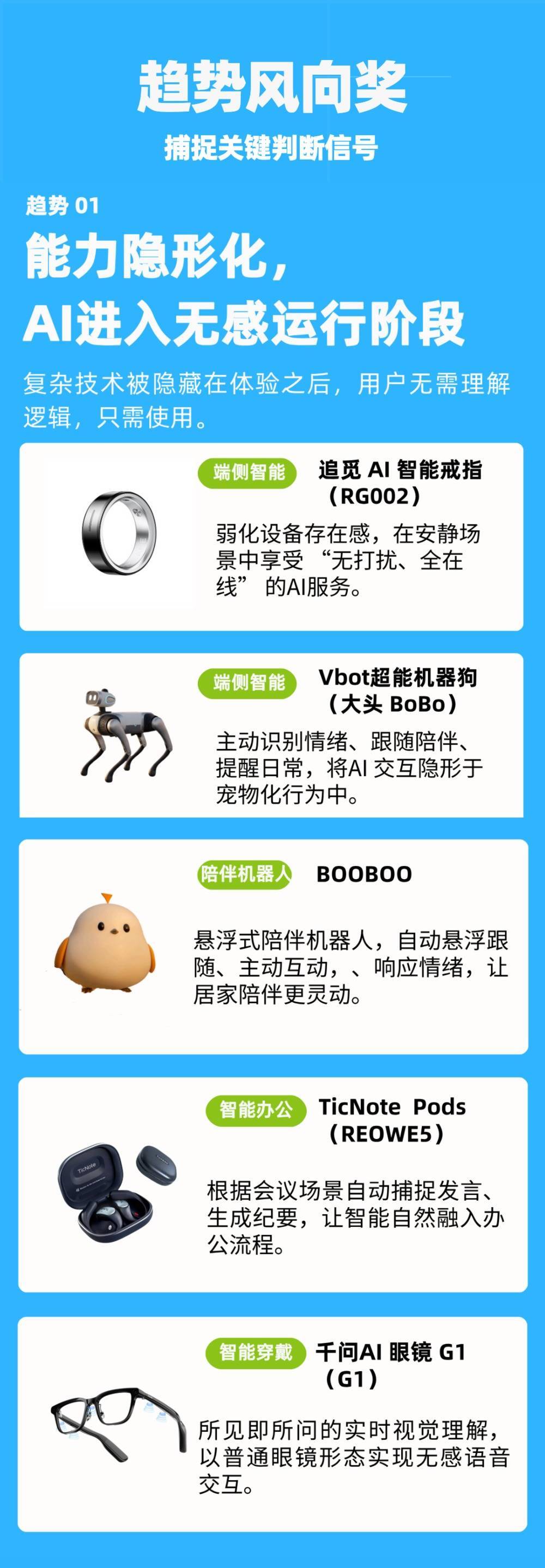 以下5款居品将AI才气“藏”进正常教导与当然交互中,不打扰、但恒久在线,荣获【才气隐形化】趋势风向奖。